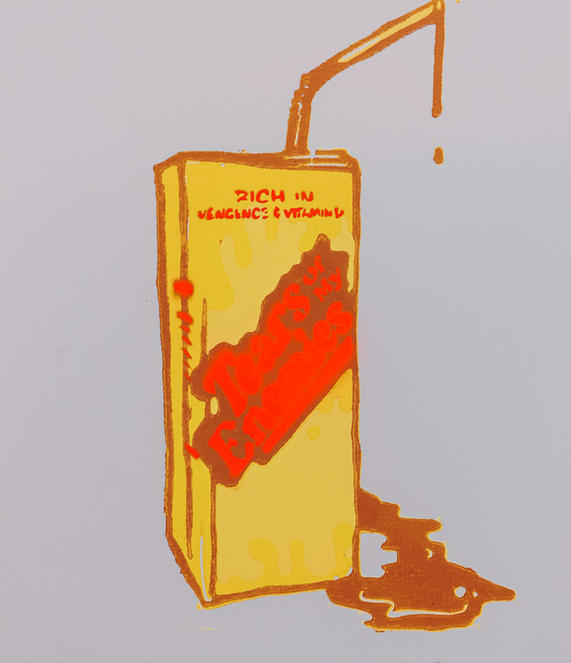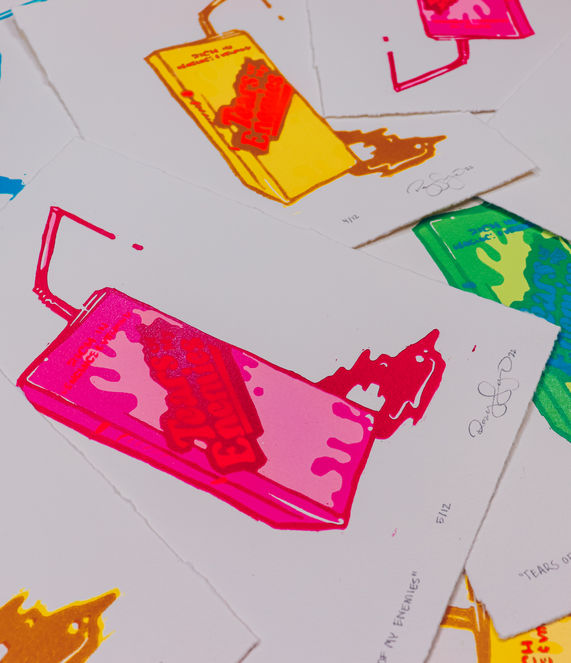 THIS MULTI-LAYER WOODBLOCK RELIEF CARVING WAS FUELED BY MY ANGST WHILE GETTING THROUGH MY FINAL YEAR OF UNDERGRAD. I HAD A LOT OF FUN CREATING THIS PEICE... ESPECIALLY BECAUSE I USED SPRAY PAINT AS THE FINAL LAYER.